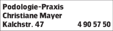 Wie lautet die Adresse von Podologie-Praxis Mayer Christiane?