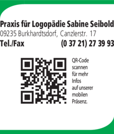 Die Adresse von Praxis für Logopädie Sabine Seibold lautet: Canzlerstr. 17, 09235 Burkhardtsdorf