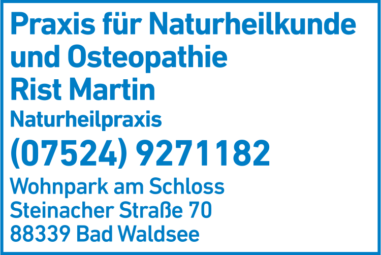 Praxis für Naturheilkunde und Osteopathie Martin Rist 07524 9 27 11 82 Bad Waldsee Steinacher Str. 70 88339