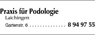 Praxis für Podologie 07333 8 94 97 55 Laichingen Gartenstr. 6 89150