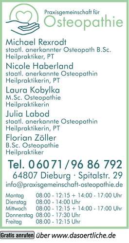 Praxisgemeinschaft für Osteopathie 06071 2 15 28 Dieburg Spitalstr. 29 64807 https://media.roeser-online.de/02/123/LOGO/000/428/412_200x100.png