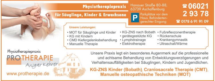 Die Adresse von Pro Therapie Inh. Ansgar Kehrer lautet: Hanauer Str. 80-88, 63739 Aschaffenburg