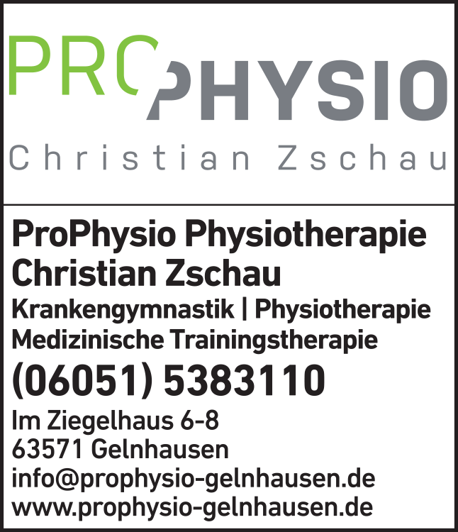 Die Adresse von ProPhysio Inh. Christian Zschau Physiotherapie lautet: Im Ziegelhaus 6-8, 63571 Gelnhausen