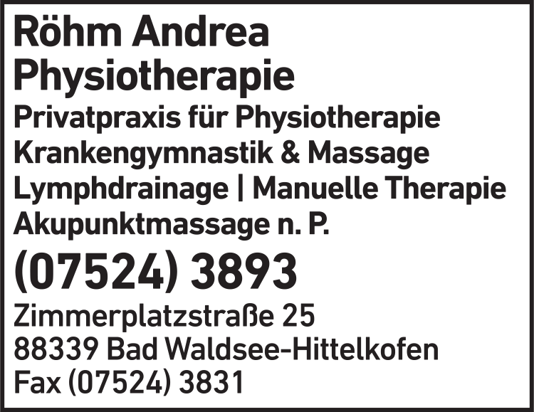 Wie lautet die Adresse von Röhm Andrea Praxis für Krankengymnastik?