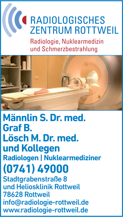 Die Adresse von RADIOLOGISCHES ZENTRUM ROTTWEIL lautet: Stadtgrabenstr. 8, 78628 Rottweil