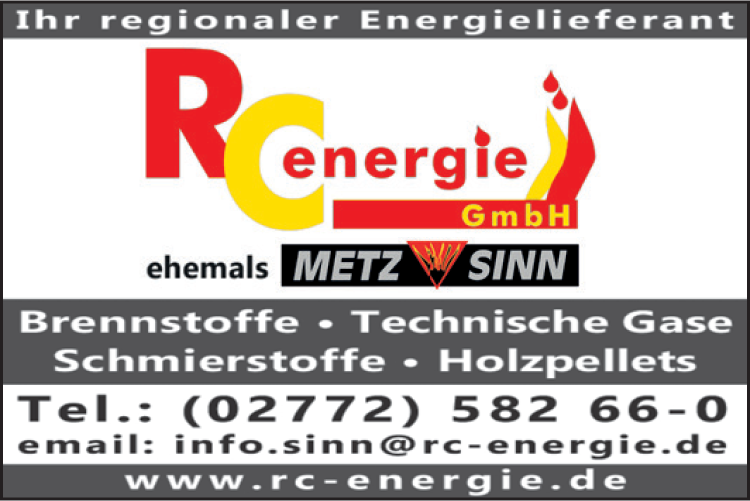 RC Energie GmbH vormals Karl Metz GmbH Heizöl 02772 5 82 66-0 Sinn Am Rechtsrain 2 35764