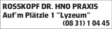 ROSSKOPF DR. HNO PRAXIS 0831 1 04 45 Kempten Auf'm Plätzle 1 87435 5 5 1