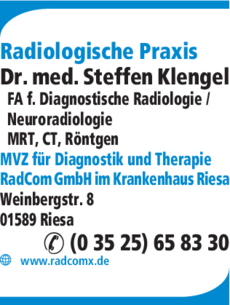 Wie lautet die Adresse von Radiologische Praxis Dr. med. Steffen Klengel?
