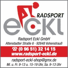 Die Adresse von Radsport Eckl lautet: Altenstadter Str. 6, 92648 Vohenstrauß