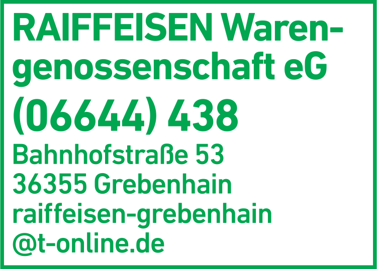 Die Adresse von Raiffeisen-Warengenossenschaft eG lautet: Bahnhofstr. 53, 36355 Grebenhain