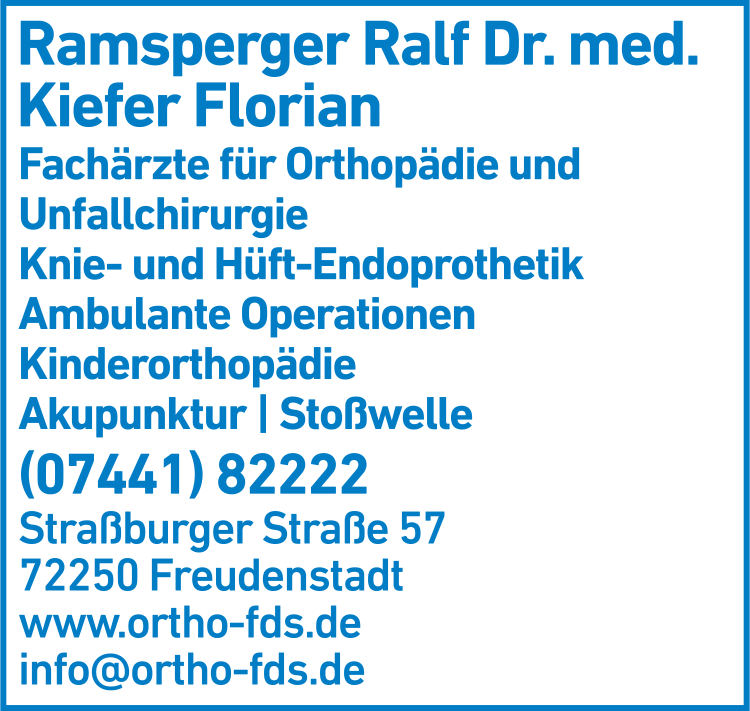 Ramsperger Ralf Dr. med. Orthopädie und Unfallchirurgie 07441 8 22 22 Freudenstadt Straßburger Str. 57 72250 de.teleauskunft.oetb.webapp2.detail.Graphic@648ecadc 5 5 2