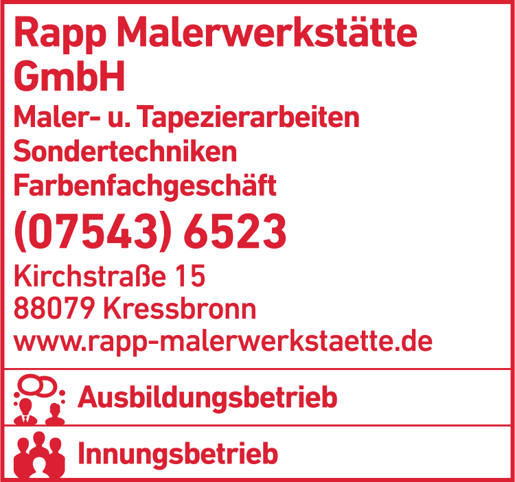 Rapp Malerwerkstätte GmbH 07543 65 23 Kressbronn am Bodensee Kirchstr. 15 88079 3 5 1