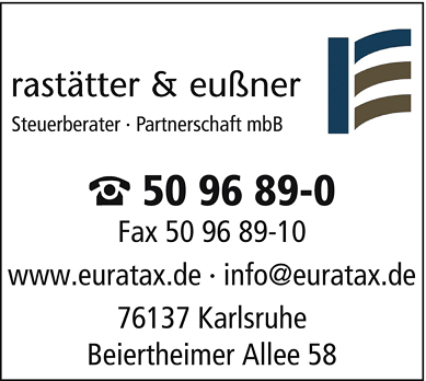 Rastätter & Eußner 0721 50 96 89-0 Karlsruhe Beiertheimer Allee 58 76137 Südweststadt https://media.roeser-online.de/02/123/LOGO/000/168/384_200x100.png 1 5 1