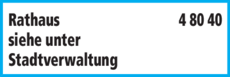 Rathaus hat montags von 08:30 - 12:00 Uhr und 13:00 - 15:30 Uhr, dienstags von 08:30 - 12:00 Uhr und 13:00 - 18:00 Uhr, donnerstags von 08:30 - 12:00 Uhr und 13:00 - 15:30 Uhr und freitags von 08:30 - 12:00 Uhr geöffnet.