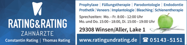 Die Adresse von Rating & Rating lautet: Lake 1, 29308 Winsen