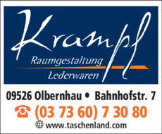 Raumgestaltung, Gardinen, Bodenbeläge u. Lederwaren Th. Krampf 037360 7 30 80 Olbernhau Bahnhofstr. 7 09526 https://ies.v4all.de/0122/OETB/0235/1/5971/49285971_200x100px.png