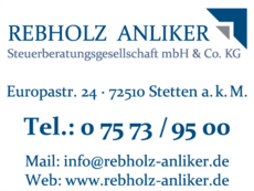 Die Adresse von Rebholz Anliker Steuerberatungsgesellschaft mbH & Co.KG lautet: Europastr. 24, 72510 Stetten