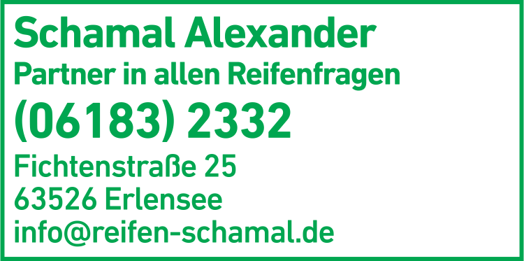 Die Adresse von Reifen-Schamal Reifendienst lautet: Fichtenstr. 25, 63526 Erlensee