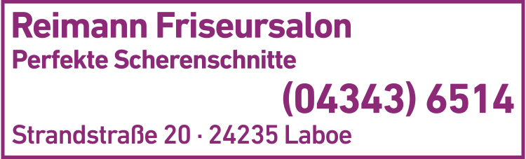 Die Adresse von Reimann Friseursalon lautet: Strandstr. 20, 24235 Laboe