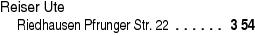 Die Adresse von Reiser Ute lautet: Pfrunger Str. 22, 88377 Riedhausen