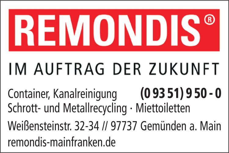 Die Adresse von Remondis lautet: Weißensteinstr. 32-34, 97737 Gemünden