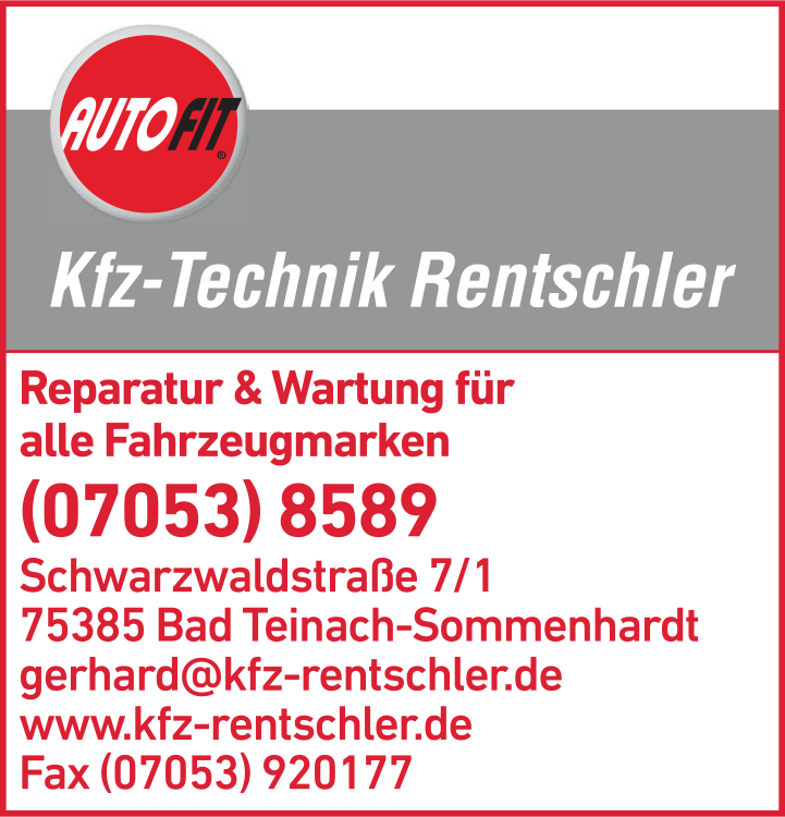 Die Adresse von Rentschler Kfz-Technik lautet: Schwarzwaldstr. 7, 75385 Bad Teinach-Zavelstein