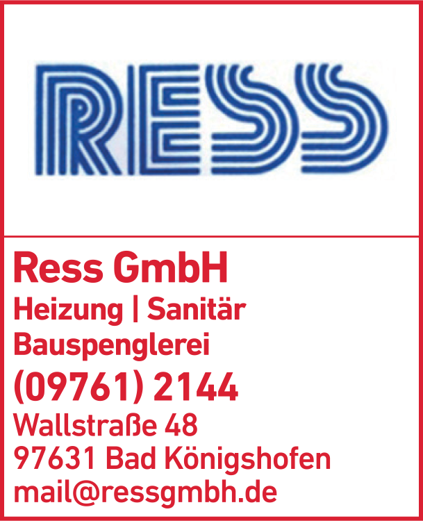 Die Adresse von Ress GmbH Heizung, Sanitär lautet: Wallstr. 48, 97631 Bad Königshofen