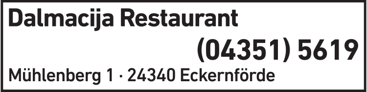 Die Adresse von Restaurant Dalmacija lautet: Mühlenberg 1, 24340 Eckernförde