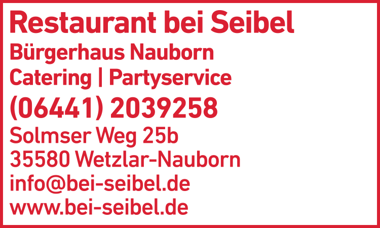 Die Adresse von Restaurant bei Seibel Bürgerhaus lautet: Solmser Weg 25 b, 35580 Wetzlar-Nauborn