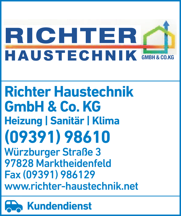 Die Adresse von Richter Haustechnik GmbH & Co. KG lautet: Würzburger Str. 3, 97828 Marktheidenfeld