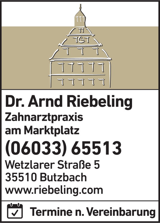 Die Adresse von Riebeling Arnd Dr. Zahnarzt lautet: Wetzlarer Str. 5, 35510 Butzbach
