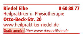 Wie lautet die Adresse von Riedel Elke Heilpraktiker u. Physiotherapie?
