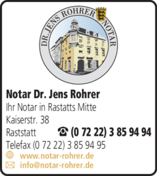 Die Adresse von Rohrer Jens Dr. lautet: Kaiserstr. 38, 76437 Rastatt