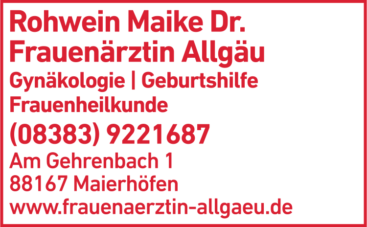 Rohwein Maike Ärztin für Frauenheilkunde 08383 9 22 16 87 Maierhöfen Am Gehrenbach 1 88167