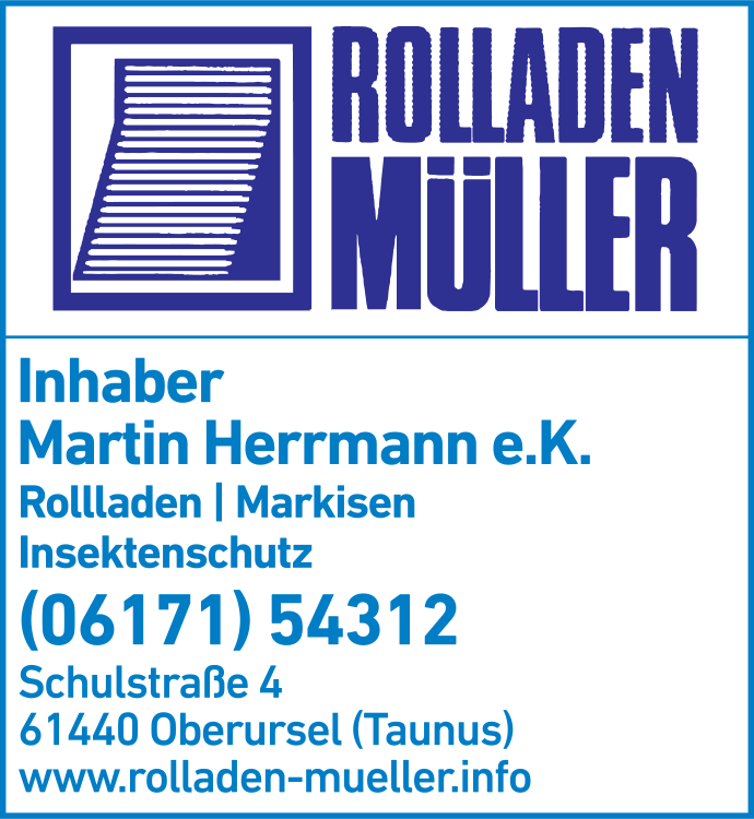Rolladen-Müller Inh. Martin Herrmann e.K. Rollladenbau 06171 5 43 12 Oberursel (Taunus) Schulstr. 4 61440 de.teleauskunft.oetb.webapp2.detail.Graphic@711435fd 2.5 5 5