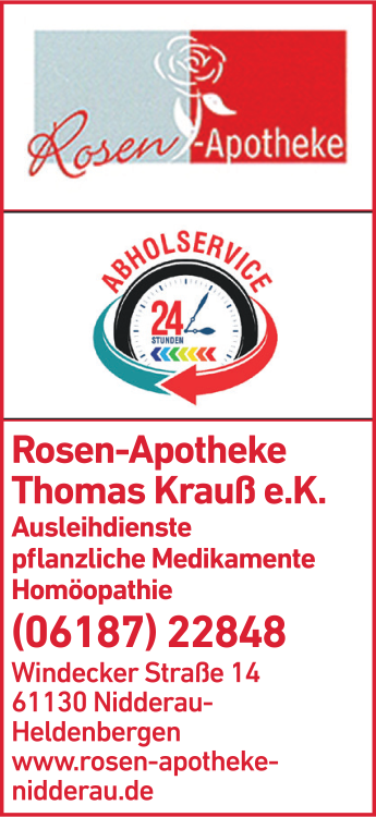 Die Adresse von Rosen-Apotheke Inh. Thomas Krauß lautet: Windecker Str. 14, 61130 Nidderau