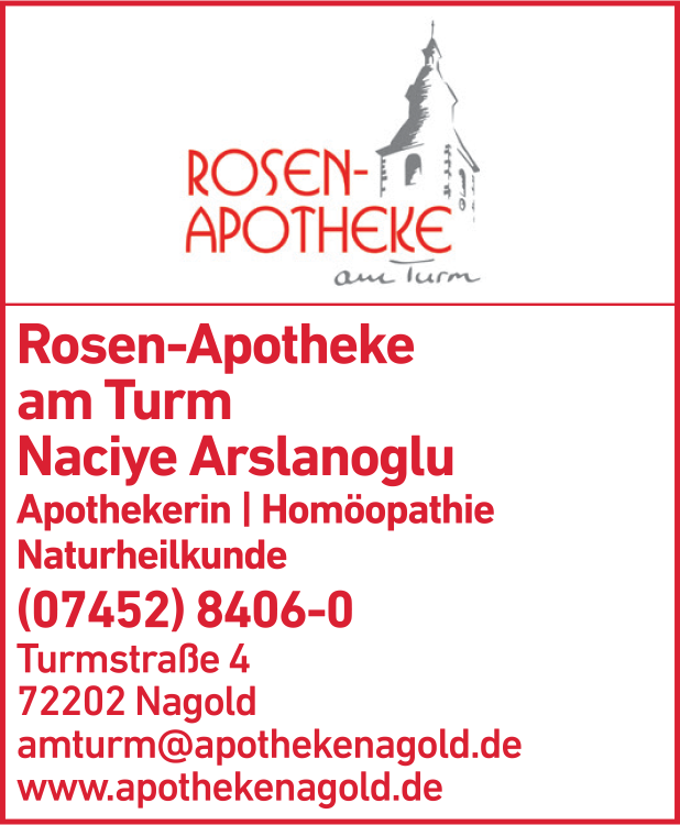Die Adresse von Rosen Apotheke am Turm, Inh. N.Arslanoglu lautet: Turmstr. 4, 72202 Nagold