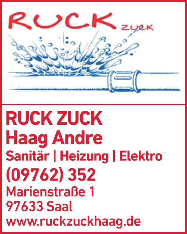 Ruck Zuck, Heizung Sanitär 09762 3 52 Saal Marienstr. 1 97633
