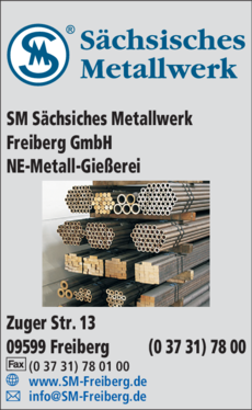 Die Adresse von Sächsisches Metallwerk Freiberg GmbH lautet: Zuger Str. 13, 09599 Freiberg