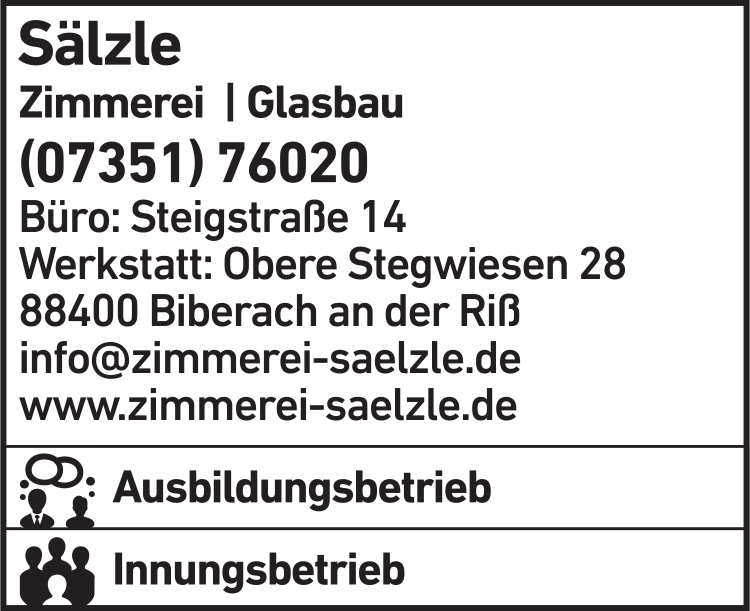 Sälzle Zimmerei 07351 7 60 20 Biberach an der Riß Steigstr. 14 88400 de.teleauskunft.oetb.webapp2.detail.Graphic@b0ad332