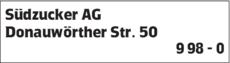 Südzucker AG 09090 9 98-0 Rain Donauwörther Str. 50 86641