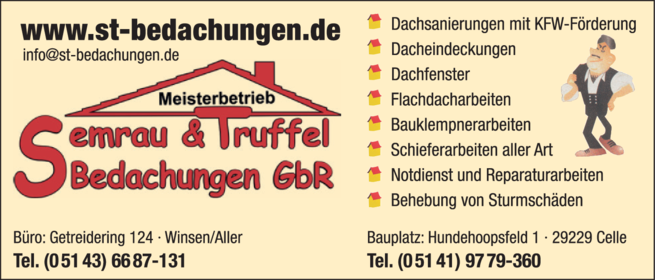 S & T Bedachungen GbR 05143 66 87-131 Winsen Getreidering 124 29308 Südwinsen https://ies.v4all.de/0122/OETB/0154/0/7260/54067260_200x100px.png