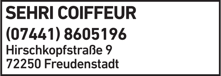 Die Adresse von SEHRI COIFFEUR lautet: Hirschkopfstr. 9, 72250 Freudenstadt
