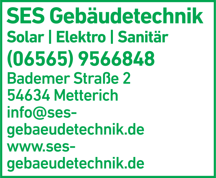 SES Gebäudetechnik 06565 9 56 68 48 Metterich Bademer Str. 2 54634