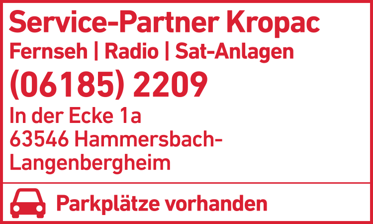 Die Adresse von SP:Kropac TV, Video, HiFi lautet: In der Ecke 1 A, 63546 Hammersbach