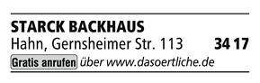 Die Adresse von STARCK BACKHAUS lautet: Gernsheimer Str. 113, 64319 Pfungstadt