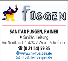 Die Adresse von Sanitär FÜSGEN, RAINER lautet: Am Nordkanal 7, 47877 Willich
