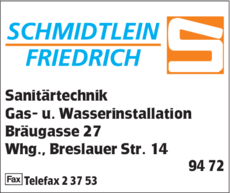 Wie lautet die Adresse von Sanitärtechnik Schmidtlein Friedrich?