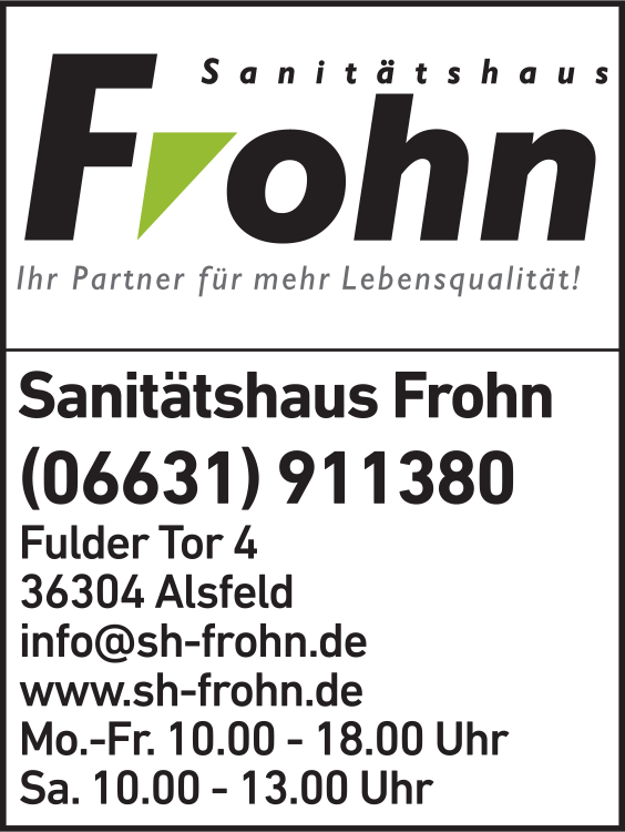 Die Adresse von Sanitätshaus Frohn lautet: Fulder Tor 4, 36304 Alsfeld