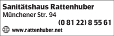 Die Adresse von Sanitätshaus Rattenhuber lautet: Münchener Str. 94, 85435 Erding